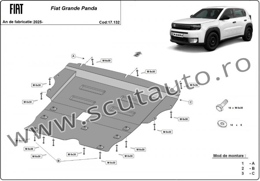 | Scutul protejeazã: motor, cutie de viteză, jug motor/cadru motor |